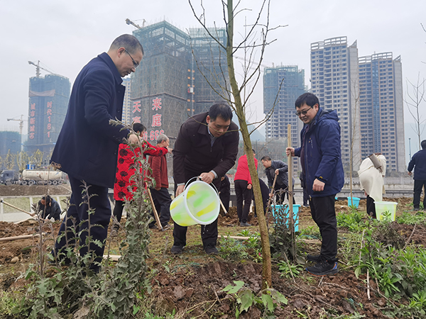 怎样提高成活率?后期管护责任是怎么落实?如何把城市绿化景观带规划建设好,提升人居幸福度?植树过程中,刘朝平一边植树,一边与相关部门负责人交谈,了解全县植树造林目标任务、管护模式等方面情况。他希望自然资源和规划局要搞好规划,在推进植树造林的同时,要把生态效益与经济效益有效结合推动绿色发展。