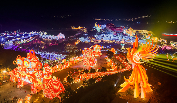 今回のランタン祭りは「ランタンで中国を描く」をテーマに、色とりどりのランタン、絞り染め、切り絵などの無形文化遺産の技法を、中国の神話・叙事詩や典型的な歴史物語と深く融合させます。会場内には「中国結び大通り」「福禄広場」「木蘭伝奇」「匠の無形文化遺産」「神秘的な中国」など10のエリアを設け、11組の大型ランタンと200組以上の中小型ランタンで没入型の物語の空間を構築し、「万象共生」という創作理念を表現します。