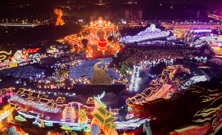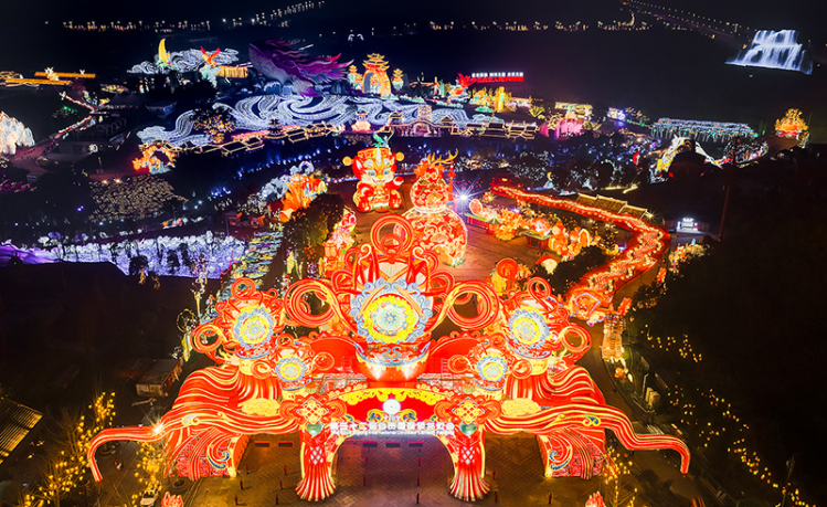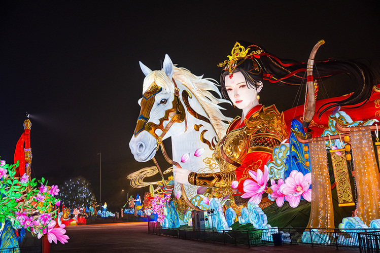 This lantern festival, following the theme of ‘Painting China with Lanterns,’ deeply integrates intangible cultural heritage skills like lantern-making, tie-dye and paper-cutting with Chinese myths, epics, and classic historical stories. It features 10 themed sections, such as Chinese Knot Boulevard, Fortune Square, Mulan’s Legend, Ingenuity in Intangible Cultural Heritage, and Magical China. With 11 large-scale lantern sets and over 200 medium and small-scale ones, it creates an immersive narrative space and unfolds an artistic scroll showcasing ‘The Symbiosis of All Things.’