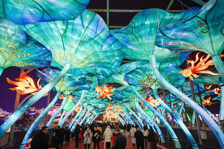 自貢ランタンは、ランラン芸術の国家級無形文化遺産の1つの代表です。今回のランタン祭りが開催される場所は、面積が約43ヘクタールに達し、中には「中国結び大通り」「福と禄が共に訪れる」「木蘭伝説」など10のエリアが設けられ、11組の超大型ランタンと200組以上の中小型ランタンが設置されています。