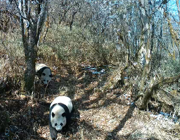 The area where the images were captured were at an elevation of 2,800 meters above the sea level. In one video clip, two wild giant pandas, who were assumed to be a mother and her child, were captured on infrared cameras. And the two giant pandas were ambling together.