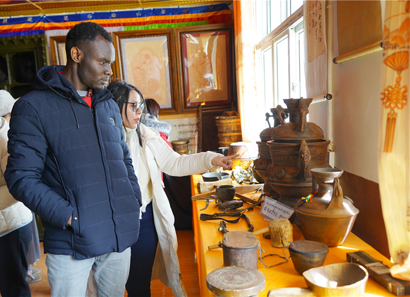 在觉囊时轮藏香传习所,外国友人了解到,用于藏香制作的三百多味藏草药都来自附近山坡和草原,原料的采摘严格按照藏药原理和生态保护进行。藏香制作传习所有200余名农牧民子女接受了古法藏香理论和制作技艺培训,数十人熟练掌握了古法藏香制作技艺。目前,他们每月能有3000多元的收入,在传习古法工艺的同时也实现了脱贫。
