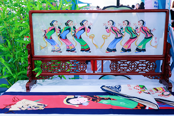 非遗工坊体验区,绵竹年画传承人正手把手教游客拓印绵竹版画。北京市民黄阿姨拿起棕刷,在年画传承人指导下,完成一幅属于自己的生肖年画。“我小时候就喜欢年画,今天能亲手拓印一张,还能把德阳的非遗带回家,比买东西还开心。” 她举着刚拓印的生肖说道。