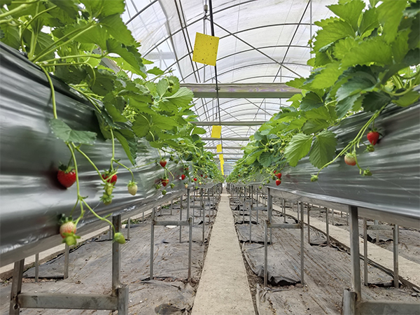 简阳乐甜家庭农场负责人陈琳表示,今年农场突破技术瓶颈,实现了从育苗到生产的全链条自主化管理,还引进“宝珠”和“粉玉2号”两个优质新品种,采用四川省农业科学院自主研发的无土栽培草莓营养液,不仅让草莓品质稳定、口感香甜,还大大降低了气候环境波动对草莓生产的影响。此外,农场还全程采用物理防虫和生物防虫技术,为草莓生长筑起“安全屏障”,确保草莓生长环境良好。陈琳介绍:“今年草莓产量预计比去年高,苗情比较稳定,采收时间可持续到明年5月底。”