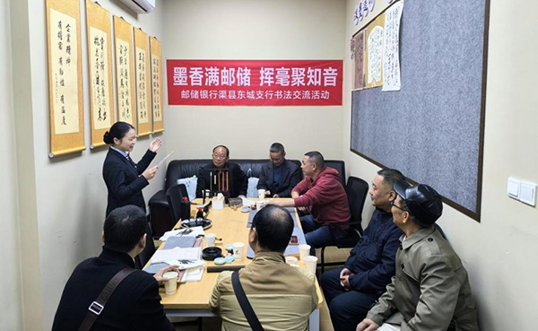 近日,中国邮政储蓄银行达州市渠县支行将弘扬中华传统文化与创新金融服务深度结合,打造书法文化特色网点并举办“墨香满邮储 挥毫聚知音”书法交流活动,在传承优秀传统文化的同时,探索出“文化+金融”的客户服务新模式。