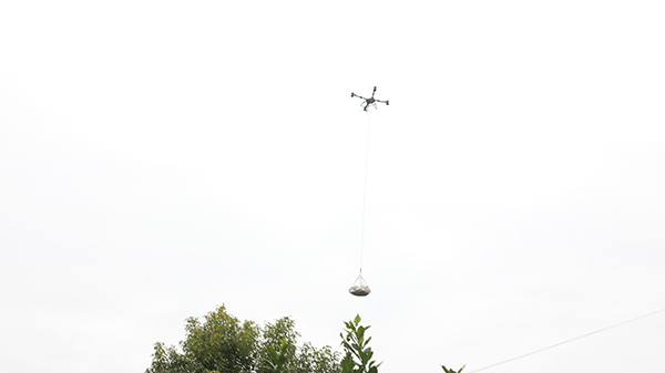 走进基地,漫山柚树被果实压弯枝头,空气中弥漫着清新柚香,村民们正有序地采摘、分拣、包装。随后,一阵旋翼轰鸣声由远及近,无人机稳稳吊起几筐刚采摘的柚子,精准运送到集中点。