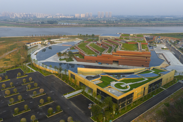 江口沉银博物馆位于四川省眉山市彭山区江口街道,府河和南河交汇处,紧邻江口明末战场遗址。项目总规划面积200亩,其中博物馆占地60亩,建筑面积3.63万平方米,总投资8.62亿元。2021年,江口明末战场遗址与广汉三星堆遗址、成都金沙遗址一同被评为“百年百大考古发现”。
