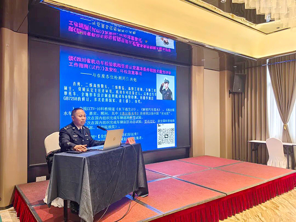 11月26日上午,宜宾市公安局交通管理支队二级高级警长、高级工程师肖勇,应邀为宜宾市市场监督管理局组织的全市计量和检验检测高质量发展培训班授课,为全市各机动车检验检测机构负责人开展了一堂生动的“交通安全”专题讲座,从源头上筑牢道路交通安全防线。