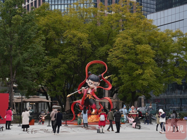 成都市民打卡哪吒雕像。韦维 摄