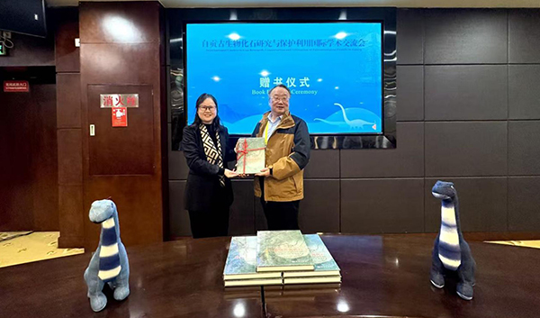 在随后举行的国际学术交流会上,自贡恐龙博物馆首席专家叶勇介绍新著《四川盆地恐龙化石》的学术价值与编写背景,研究部主任江山分享川南多齿兽最新研究成果。会议期间还举行赠书仪式,自贡恐龙博物馆向曲阜师范大学等国内外机构赠送该著作,推动学术资源共享与国际合作。