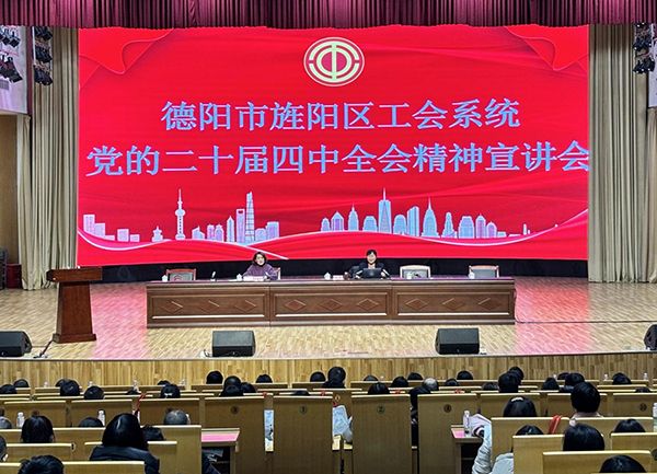 12月3日,德阳市旌阳区总工会召开工会系统学习贯彻党的二十届四中全会精神宣讲会。各镇街(园区)、行业工会联合会工会主席及一线职工代表等200余人参会。