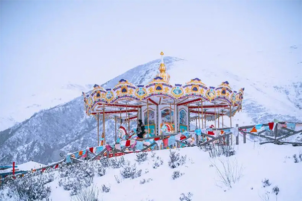 如果想体验专业滑雪的魅力,鹧鸪山自然公园堪称滑雪发烧友的“终极赛场”,3000—3700米的高海拔赋予其优质雪质与漫长雪期(11月下旬至次年3月)。作为国家AAAA级景区,这里坐拥5条专业滑雪道,从新手教学道、练习道到资深玩家专属的中级道、高级道,总长约3公里且均配备魔毯,满足不同水平滑雪者的速度与激情。除此之外,旋转木马、情人桥、雪地摩托、雪上飞碟等10余项戏雪项目趣味十足,各年龄段游客都能玩得尽兴。