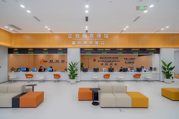 在政务板块,新川国别服务中心率先在全省范围内实现了市、区、街道等多部门、多层级业务办理的集成;同时,打造“一窗受理”点位,配备4名双语导办员与24小时政务服务自助终端,为外企员工提供出入境、税务、不动产登记等349个政务事项的便捷办理。