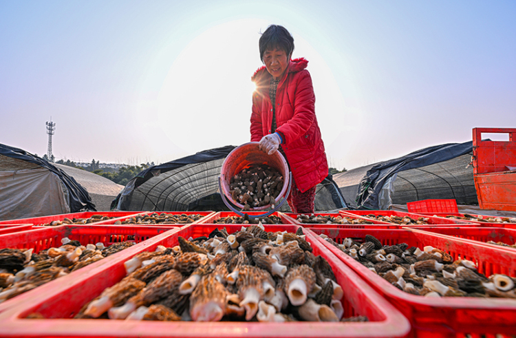 村民在整理羊肚菌