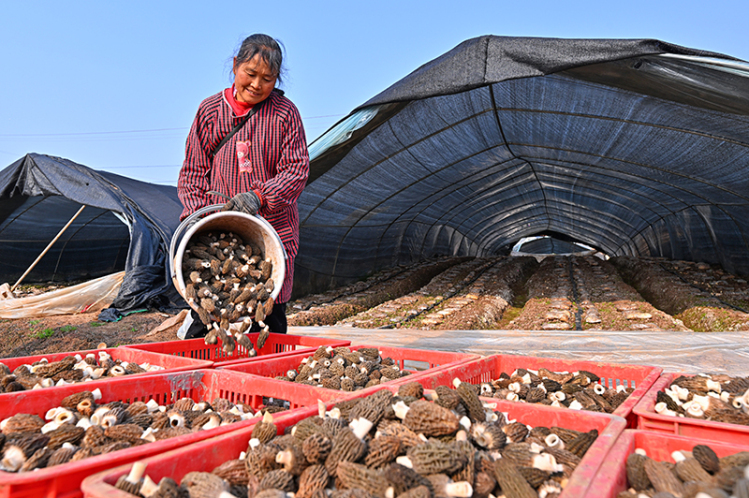 近年来,眉山市仁寿县谢安镇充分利用冬季土地空闲的时间,采取“党支部+村集体+农户”的抱团模式,规模化种植羊肚菌,让“冬闲田”成“增收田”,提高土地效益,增加村民收入。(文/图 潘帅)