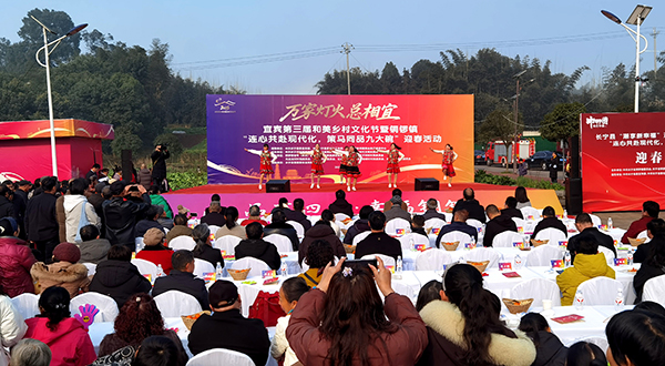 2月6日,宜宾第三届和美乡村文化节暨铜锣镇“连心共赴现代化,策马同品九大碗”迎春活动在长宁县铜锣镇便民服务中心广场举行。