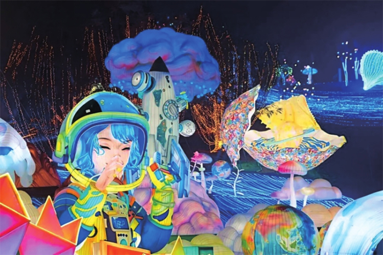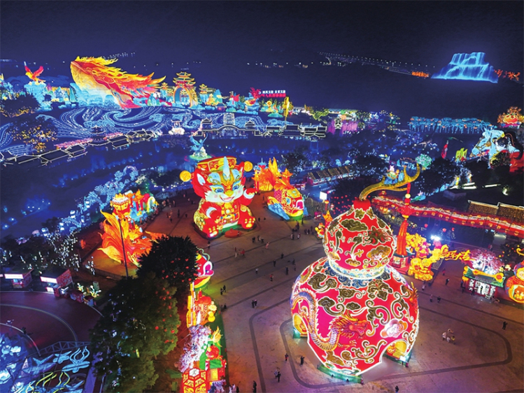 35米高的《华结映门》灯组,交织出全球华人心中共同的“中国结”;长达180米的《木兰传奇》灯组,用“彩灯连环画”把花木兰的传奇重新述说;长210米、高32米的《神奇华夏》灯组,将《庄子·逍遥游》中的“鲲鹏”点亮……1月23日晚,自贡·中华彩灯大世界,伴随着观众一声声“快看这个”“太震撼了”“我要和它合影”,第32届自贡国际恐龙灯会正式开幕。2月7日,第55届成都国际熊猫灯会也在成都东安湖溪峰岛开灯迎客。