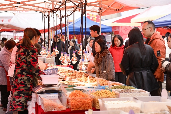 “金牛新春逛耍嘉年华”目前已联动金牛区村糖会、成都国际商贸城年货节、荷花池新春潮购会等推出10余场福利活动,在重点商圈派送福利上千份。免费腊八粥、手写春联、精致文创等年味十足的福利,吸引众多消费者在购买年货的同时,享受节日的美好氛围,更有效带动商圈客流显著增长——成都国际商贸城日均客流量突破10万人次,荷花池商圈迎来销售“爆点”,市场内人流如潮,通过多点发力、多场景协同,极大促进全区一季度社会消费活力提升。