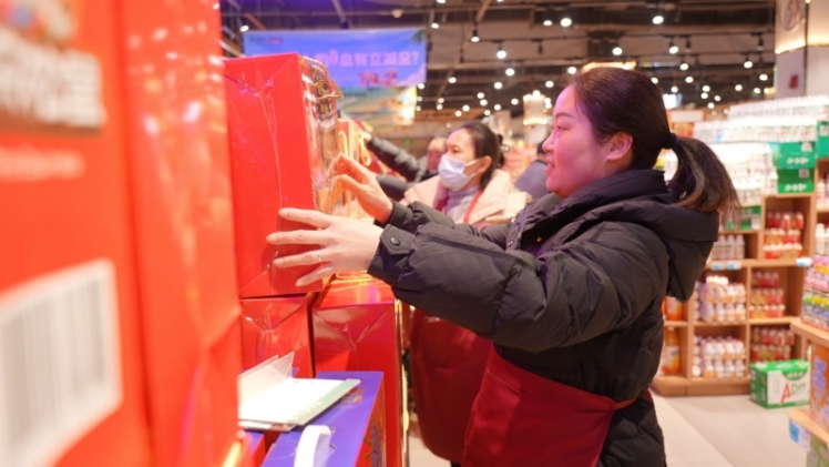 城区的一家大型超市内,年味十足。一进门,“新春大促”“福气满满”等新春装饰标语跃入眼帘。米面粮油区货品码放整齐,礼盒区琳琅满目,休闲零食、酒水饮料、调味干货分区清晰,应有尽有。超市店长刘玉良介绍:“我们提前一个月就开始备货,整体库存比去年同期增加了20%,重点保障肉禽蛋、蔬菜、粮油等民生商品供应。价格方面,我们承诺与去年持平,绝不趁节涨价,就是要让老百姓买得安心、过得舒心。”