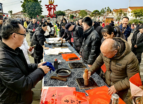 漫步绵竹街头,只见处处彩门拱立、彩灯高挂,大街小巷被独特的年画元素装点得分外靓丽,洋溢着浓浓的节日氛围。当《画年》的歌声悠扬响起,“画年”的故事便伴着旋律缓缓铺展,与现代生活同频共振——时隔12年的河灯再次亮起,年画故事、地域文化与流光溢彩的灯光艺术共同点亮了绵竹的新春夜空,也唤醒了群众心底的民俗记忆;广场上、公园里,戏腔悠扬、年画飘香,川剧展演、太极拳表演、年画拓印、写春联送祝福等丰富多彩的群众文化活动如火如荼;剑南老街、安国里、仟坤水街等特色街区,非遗集市、美食摊位与流动演艺相映成趣,人们在这里赏年画、品年味,感受着绵竹特有的历史文化和浓郁的烟火气息。
