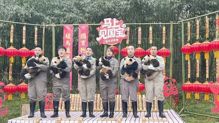2月11日,一群毛茸茸的大熊猫幼崽“萌”翻荧屏,向全国人民送上憨态可掬、暖意融融的新春祝福。这份让人难以抗拒的祝福,来自大熊猫国家保护研究中心举办的“马上见国宝”新春主题活动。来自中国大熊猫保护研究中心和成都大熊猫繁育研究基地的30只2025级新生大熊猫宝宝齐亮相,集中展示了两大机构2025年的大熊猫繁育成果。