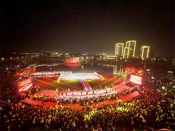 活动刚开始,专业歌手轮番登台,演绎了融入东坡文化、竹编元素的经典与新潮歌曲。婉转的旋律搭配接地气的歌词,打动着每一位观众。合唱、歌词接龙等趣味互动环节,更吸引着大家踊跃参与。欢笑声、歌声交织在一起,为即将登场的无人机表演做足了铺垫。