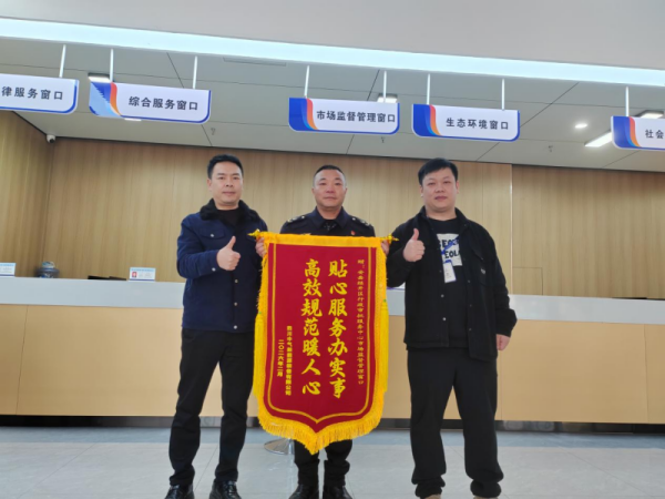 这面锦旗,源自企业总部迁址需求。在办理地址变更时,企业面临多重难题。市场监督管理窗口工作人员了解情况后,坚持以高质量服务为导向,践行“你提我办”承诺,迅速开辟绿色通道,主动上门提供“一对一”全流程代办服务,精准破解堵点卡点,让企业“足不出企”高效完成办理,切实解了燃眉之急,助力企业全身心投入到发展创业中。
