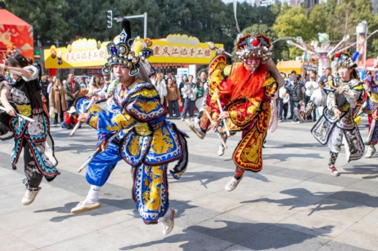 尤为引人注目的是,从大年初一到大年初六,来自广东汕头市潮阳区的歌舞队跨越一千多公里,空降东坡万达广场。这支被誉为“中华战舞”的英歌舞团队连续六天炸裂登场,舞者们面绘脸谱、手执短槌,在激昂鼓点中腾挪跳跃,气势如虹的表演引发现场阵阵喝彩,为东坡区的春节增添了别样的激情与震撼。