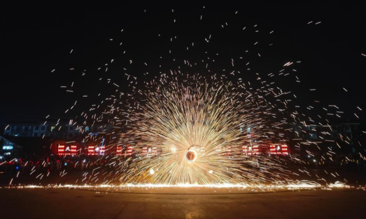 打铁花表演 供图 旌阳区委宣传部