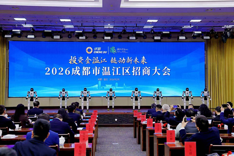 2月27日,伴随着智能机器人精彩的开场舞表演,“投资金温江 链动新未来”2026成都市温江区招商大会拉开帷幕。大会启用温江本土企业中科源码联合生态企业共同开发打造的智能机器人“小温”“小江”,并发布温江区投资指南、产业地图、场景清单。同时,大会集中签约12个项目,总投资额达155.26亿元,覆盖“3+6”现代化产业体系全领域。这些项目的落地将进一步推动产业建圈强链,为温江高质量发展奏响奋进序曲。