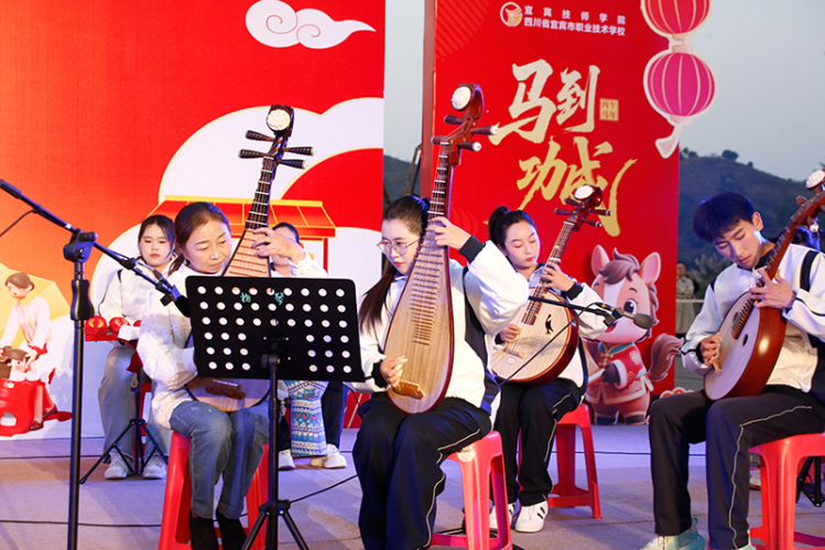 2月26日,宜宾市职业技术学校(宜宾技师学院)师生志愿者们带着满满的热情和才艺,在李庄古镇同济广场开展了一场别开生面的“送文艺进社区”寒假社会实践活动,为社区居民和游客送上了一份特别的新春礼物。