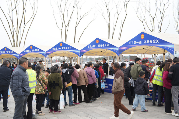 2月28日上午,四川省总工会2026年“送法到基层”法律服务活动启动仪式暨全省职工“节后返岗”法治宣传活动在德阳市中江县挂面村举行。来自中江县的600余名务工人员代表参加活动。