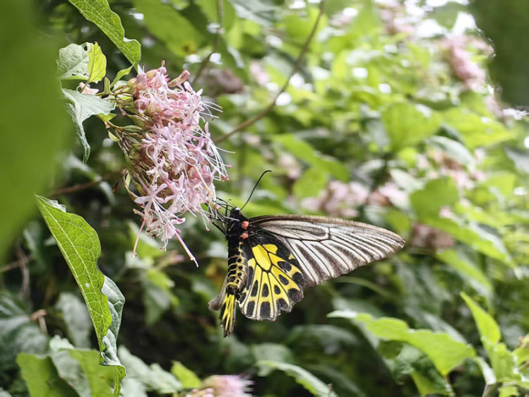 谈及这次调查中印象最深刻的蝶类,王磊首先提到了金裳凤蝶,作为我国体型最大的蝴蝶,它飞翔时姿态舒展优美,后翅的黄色斑纹在阳光下金光灿灿,格外夺目。2019年,王磊带领团队在宜宾市屏山县老君山国家级自然保护区开展昆虫调查时,曾亲眼看见一只金裳凤蝶从瀑布的水雾之中翩然飞出,恰似彩蝶破“云”而上,那个场景令他至今难忘,是生命之美与自然力量的完美交融。