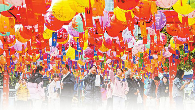 灯月交辉,映照千年民俗传承;人潮涌动,升腾人间烟火气息。3月3日,四川各地举办丰富多彩的活动欢庆元宵节,人们走出家门,在璀璨灯火中触摸文化根脉,在热闹市集里感受消费热潮。