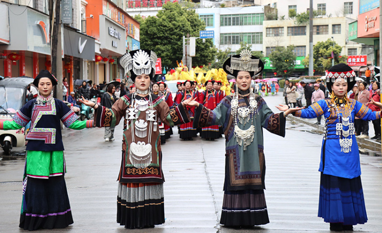 尽管活动当天春雨绵绵,但参演者的热情丝毫未减,现场观众的兴致也愈发高涨。17支参演队伍身着盛装集结亮相,彝族服饰上的银饰叮当脆响,藏族服饰的彩袖轻盈翩跹,现代服饰的设计时尚靓丽,不同风格的装扮相映成趣,汇成一道流动的彩色风景线,将元宵的喜庆气息洒满巡游沿线。