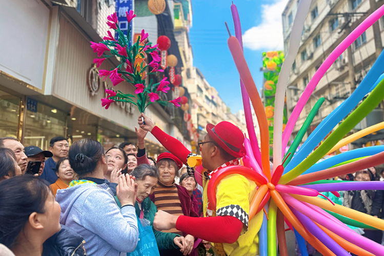 3月4日,内江市市中区箭道街张灯结彩、人头攒动,一场集民俗趣味、潮流互动与文艺展演于一体的元宵节促消费系列活动在此火热开启。
