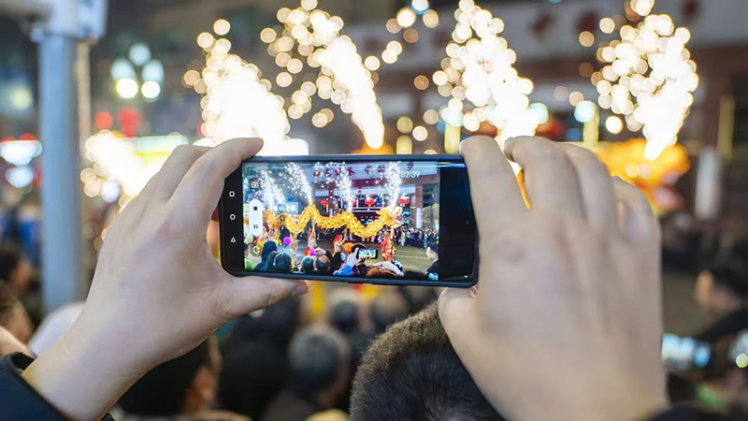 马家渡大桥上,“火树银花贺元宵”打铁花民俗展演震撼登场。专业表演者将炽热的铁水击向夜空,瞬间化作万千星火倾泻而下,完美呈现了“火树银花不夜天”的千年绝技。璀璨的铁花与空中的无人机光影交相辉映,为市民游客献上了一场视觉盛宴,也寄托了“祈福马年顺遂”的美好心愿。
