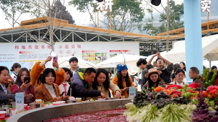 3月6日,“2026高县·花田火锅嘉年华”在宜宾市高县庆岭镇耕读山河研学基地(宜宾技师学院产教融合农耕研学实践基地)正式启幕。活动以“渝见高县·沸腾全城”为核心主题,将五彩斑斓的羽衣甘蓝花田与热辣鲜香的川渝火锅深度融合,打造出“千人品、万人购”的沉浸式火锅消费新场景,诚邀游客在赏花、品火锅的同时,深度感受高县田园风光和独特文化魅力,也为川渝火锅产业协同发展注入新活力。