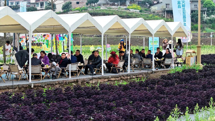 “平时在重庆吃惯了麻辣火锅,今天特意来尝高县土火锅,汤汁浓稠、土味十足,加上这花田环境,太舒服了!”来自重庆的游客屈川一边品尝美食,一边忍不住称赞。
